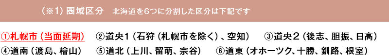 北海道6エリア(札幌、道央1、道央2、道南、道北、道東)の